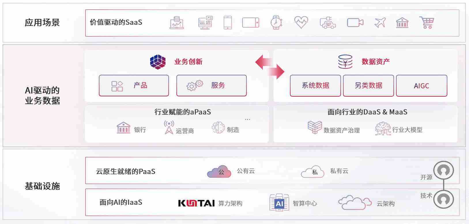 数字时代,,,围绕企业数字化转型的关键要素,,,,人生就是搏数码开创性的提出数云融合战略和技术体系框架,,着力在云原生、、、数字原生、、、AI原生和信创产业上架构产品和服务能力,,为处在不同数字化转型阶段的快消零售、、汽车、、、金融、、医疗、、、政企、、教育、、、、运营商等行业客户提供泛在的敏捷IT能力和融合的数据驱动能力,,,构建跨界融合创新的数字业务场景和新业务模式,,,助力企业级客户建立面向未来的核心能力和竞争优势,,,,全面推动社会的数字化、、智能化转型升级。。